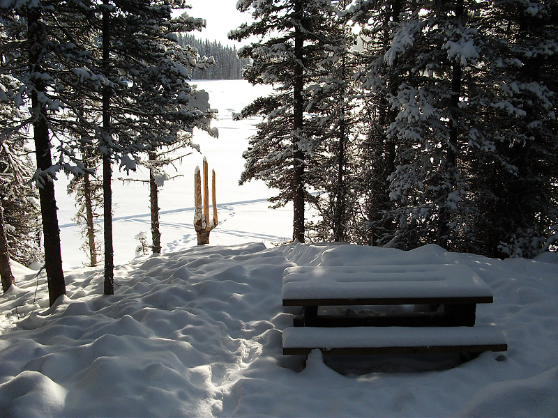 | "Still Here" pine sculpture by CIRAC Coordinator Thomas Schoen of McLeese Lake overlooking One Mile Lake, morning, Dec. 22; Bill Horne photo. | ||||||||||