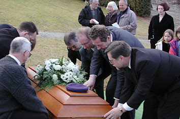 left & below: at Osoyoos cemetary; right: memento display at luncheon following service.